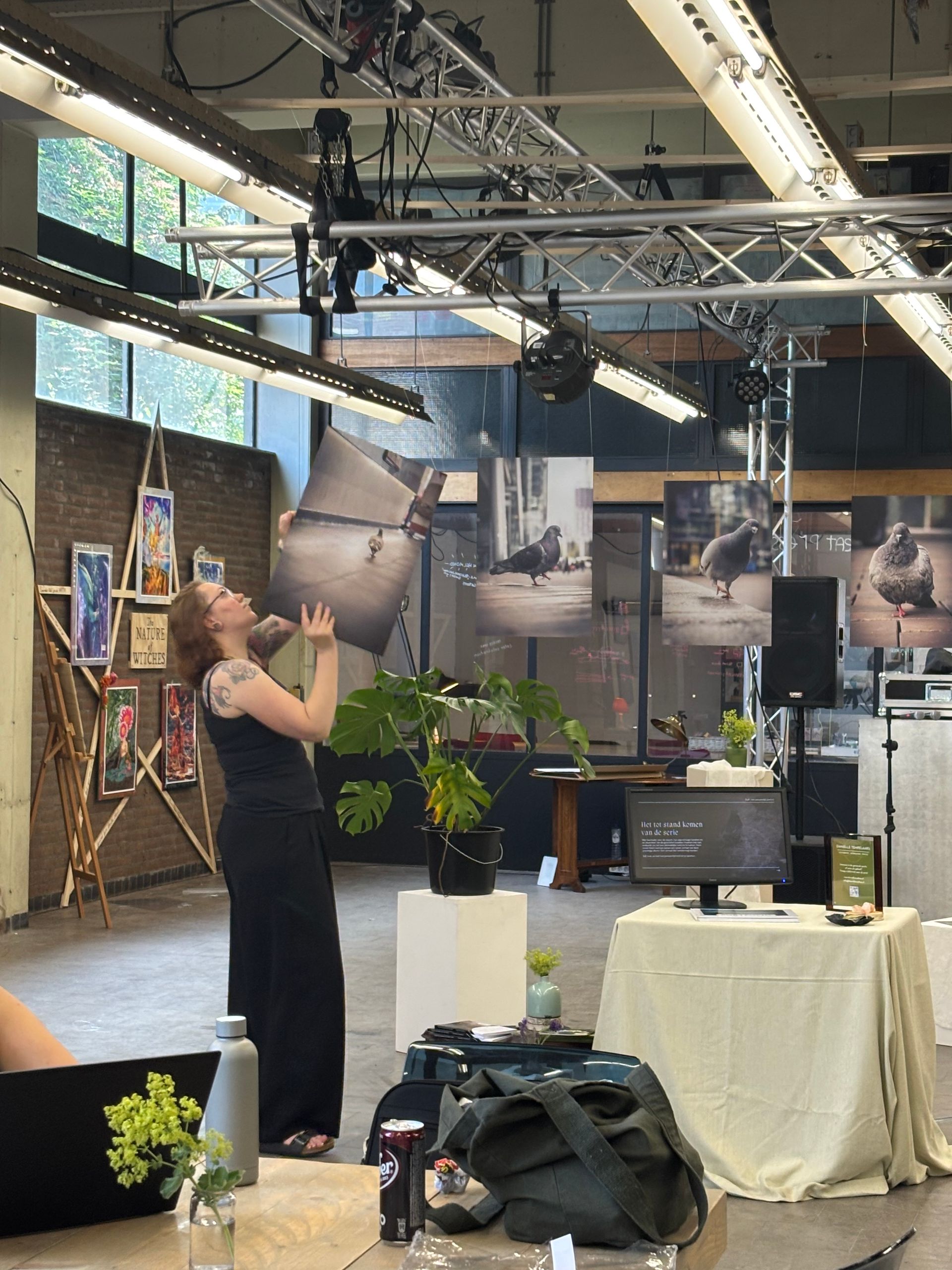 Op 13 juni 2025 studeerde ik af aan de Fotovakschool/NAVB, en daar hoort natuurlijk een eindexpositie bij. Voor deze expositie presenteer ik mijn portfolio, maar ook de serie ‘Duif – een persoonlijk portret’. Deze serie is, zoals altijd, iets omvangrijker geworden dan verwacht, maar tegelijkertijd een beknopt en persoonlijke weergave van stadsduiven. En omdat we met z’n allen zo’n fijn groepje studenten zijn, is hier ook meteen het fotografencollectief ‘Unframed Visions’ uit voortgekomen